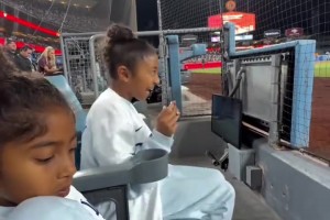 瓦妮莎带着两个宝贝女儿观看道奇棒球赛 好活泼灵动!真的太像了 2025-09-23 16:16