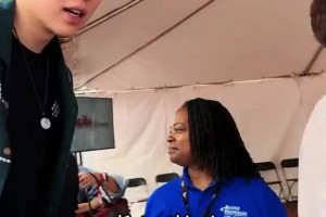 女球迷拿着湖人球衣让马刺名宿帕克签名,哭得梨花带雨的!