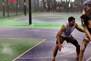 国外女郎到底有多豪放?如此大的雨天 还在室外1v1篮球单挑